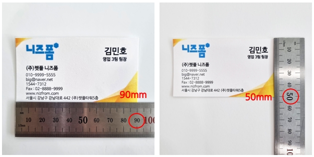 일상에서 쓰는 종이 명함 표준 사이즈(90mm*50mm)와 동일합니다.