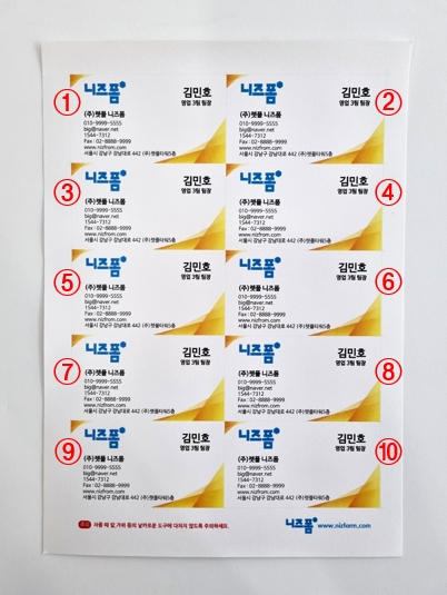 명함 만들기 A4 용지 1장 출력 시, 명함 10개를 만들 수 있습니다.