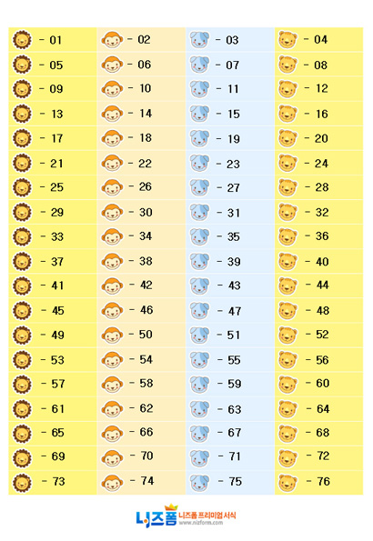 본 서식은 니즈폼(www.nizform.com)을 통해 서비스되는 분류 슬라이드라벨(동물)(76칸)(으)로서, 다운로드 받으신 후, 내용을 수정하거나 입력하여 사용하시면 됩니다.