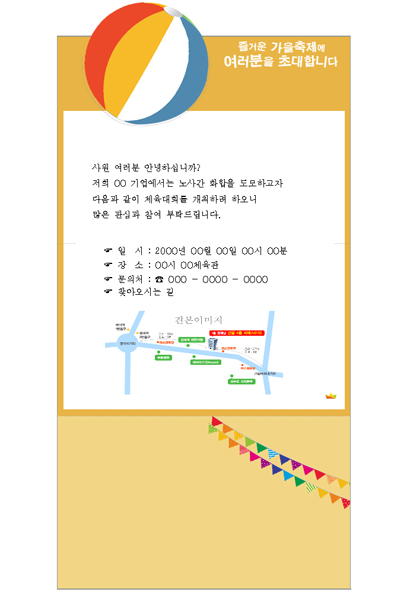 본 서식은 니즈폼(www.nizform.com)을 통해 서비스되는 체육대회초대장(애드벌룬과삼각깃발)(으)로서, 다운로드 받으신 후, 내용을 수정하거나 입력하여 사용하시면 됩니다.