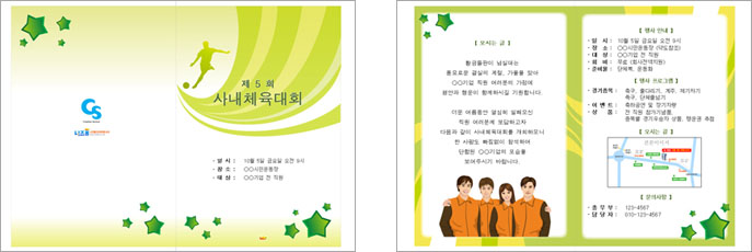 체육대회초대장 구성은 표지①, 속지①로 구성되어 있습니다.