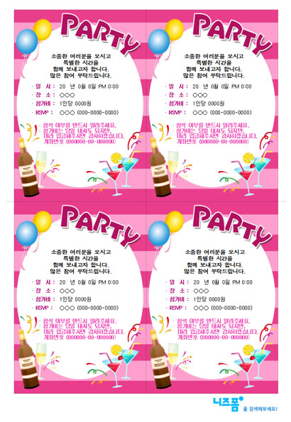 본 서식은 니즈폼(www.nizform.com)을 통해 서비스되는 파티초대장(풍선과샴페인)입니다.