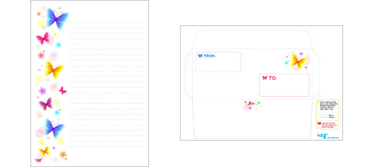 본 콘텐츠는 니즈폼(www.nizform.com)을 통해 서비스되는 봄편지지_편지봉투(나비)는 가정용 프린트기(A4)로 프린트하여 만들 수 있는 고급 편지지 세트입니다.