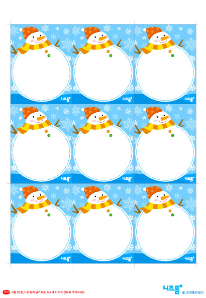 본 콘텐츠는 니즈폼(www.nizform.com)을 통해 서비스되는 메모지(눈사람)으로서, 일반 가정용 프린터로 프린트하여 실선에 맞게 잘라서 사용하시면 됩니다.