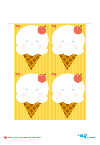 본 콘텐츠는 니즈폼(www.nizform.com)을 통해 서비스되는 메모지(아이스크림)로서, 일반 가정용 프린터로 프린트하여 실선에 맞게 잘라서 사용하시면 됩니다.