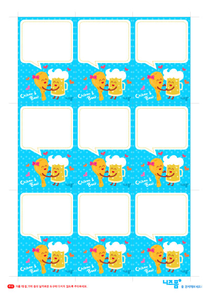 본 콘텐츠는 니즈폼(www.nizform.com)을 통해 서비스되는 메모지(치맥)로서, 일반 가정용 프린터로 프린트하여 실선에 맞게 잘라서 사용하시면 됩니다.