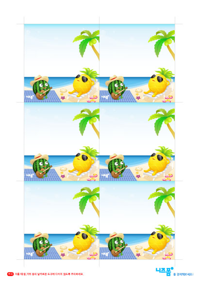 본 콘텐츠는 니즈폼(www.nizform.com)을 통해 서비스되는 메모지(여름과일)로서, 일반 가정용 프린터로 프린트하여 실선에 맞게 잘라서 사용하시면 됩니다.