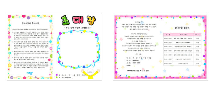 부모참여수업초대장은 겉지(1장), 속지(1장)로 총 2장으로 구성되어 있습니다.