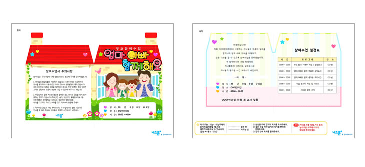 부모참여수업초대장은 겉지(1장), 속지(1장)로 총 2장으로 구성되어 있습니다.