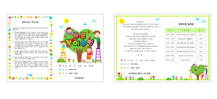 본 콘텐츠는 니즈폼(www.nizform.com)을 통해 서비스되는 부모참여수업초대장(하트나무와가족)으로서, 다운로드 받으신 후, 내용을 수정하거나 입력하여 사용하시면 됩니다.