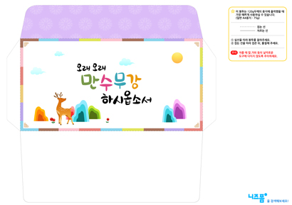 본 콘텐츠는 니즈폼(www.nizform.com)을 통해 서비스되는 현금봉투_부모님용돈봉투(오래오래만수무강하시옵소서)(으)로서, 프린트하여 사용하시면 됩니다.