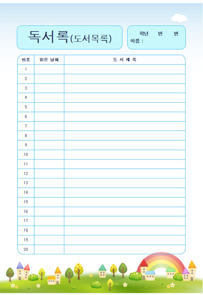 본 서식은 니즈폼(www.nizform.com)을 통해 서비스되는 독서록(도서목록)(으)로서, 다운로드 받으신 후, 내용을 수정하거나 입력하여 사용하시면 됩니다.