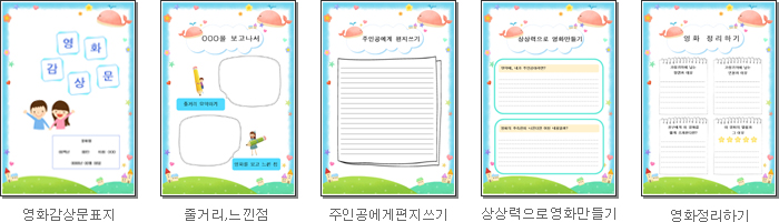 초등학교영화감상문양식 줄거리요약 영화를보고느낀점 영화주인공에게편지쓰기 상상력으로영화만들기 등이 포함되어있습니다.