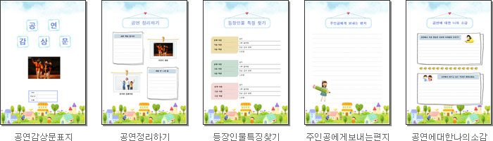 초등학교공연감상문양식 공연정리하기 공연핵심줄거리 공연관람후느낀점 등장인물특징찾기 공연주인공에게보내는편지 공연에대한나의소감 공연에서좋았던부분과아쉬운부분 공연에서바꿀점 등을 포함하고 있습니다.