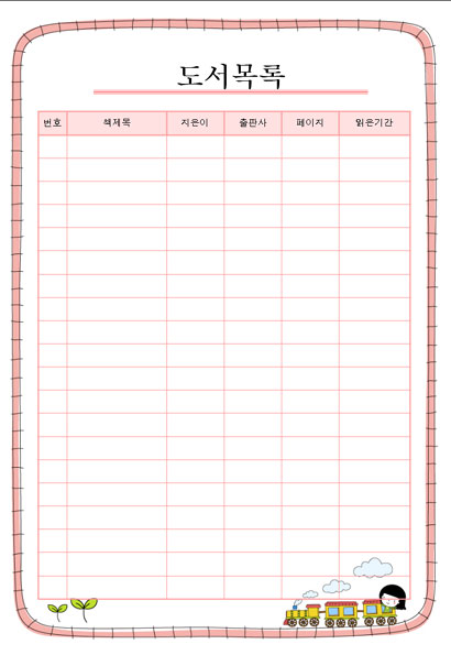 본 서식은 독서록 양식중 도서목록 입니다.