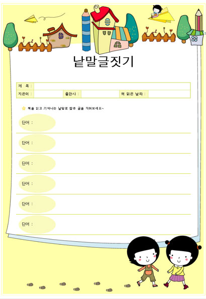 본 서식은 독서록 양식중 낱말글짓기 입니다.