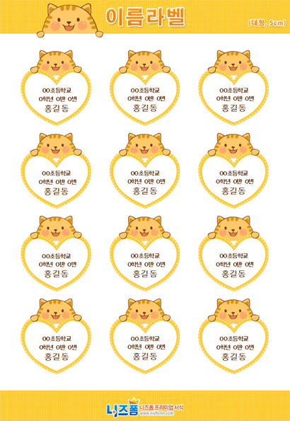 한글이나 워드 문서를 다운받으신 후 글자 수정해서 A4라벨지로 프린트해서 사용하시면 됩니다.