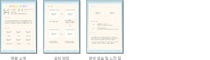 2.[요리 과정] 2페이지는 요리를 하는 과정을 적고, 그에 따른 사진을 삽입 할 수 있게 구성되어 있습니다.