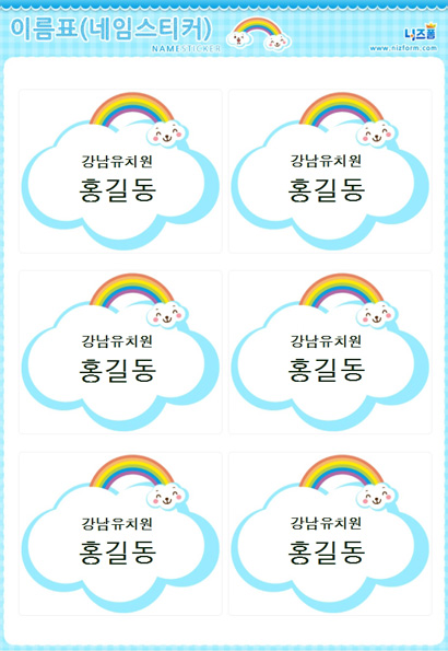 본 서식은 니즈폼(www.nizform.com)을 통해 서비스되는 이름표_네임스티커(구름과 무지개)(기타)입니다.