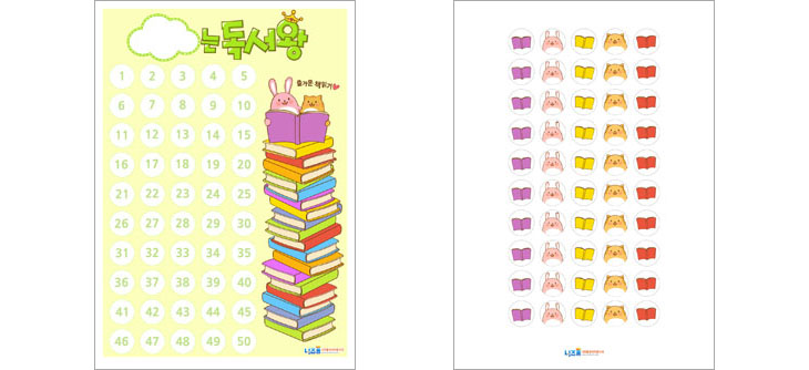 독서스티커판은 일반 A4용지에 프린트하셔서 벽면에 붙여 사용하시거나, 두꺼운 종이를 덧붙여 사용하시면 됩니다.