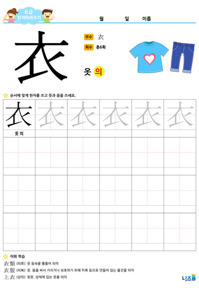 HOME초등학업 > 6급한자쓰기(衣,옷 의)
