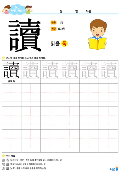 6급한자쓰기(讀,읽을 독)