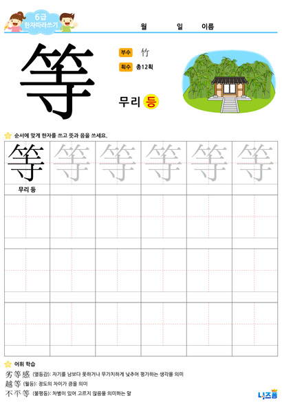본 서식은 니즈폼(www.nizform.com)을 통해 서비스되는 한자쓰기(等,무리 등)입니다.