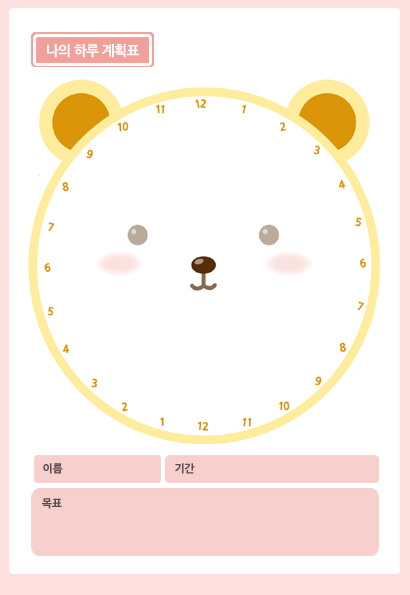 본 서식은 니즈폼(www.nizform.com)을 통해 서비스되는 일일생활계획표(곰돌이)입니다.