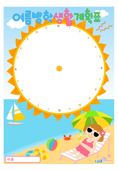 여름방학생활계획표_일일생활계획표(태양과 여자아이)
