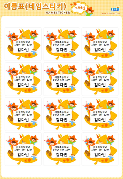 HOME초등학업 > 이름표_네임스티커(단풍잎캐릭터)(대형)