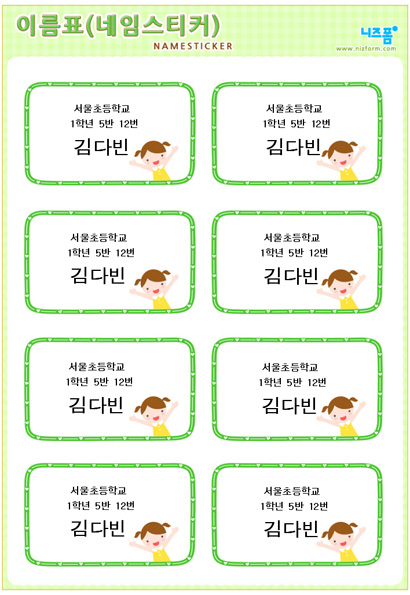 본 서식은 니즈폼(www.nizform.com)을 통해 서비스되는 이름표_네임스티커(여자아이)(기타)(으)로서, 다운로드 받으신 후, 내용을 수정하거나 입력하여 사용하시면 됩니다.