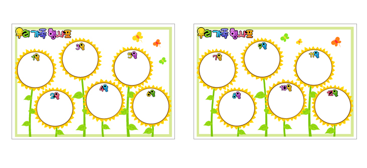 가족행사표(A4 2장)은 총2장으로 구성되어 있으며, 1월~12월 행사를 작성 할 수 있도록 구성되어 있습니다.