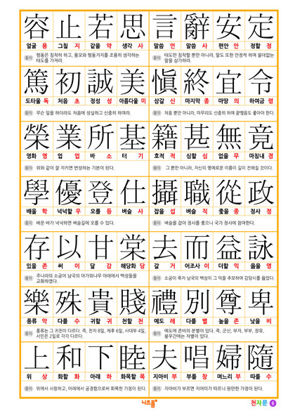 천자문은 총 18장으로 구성되어 있으며 여섯번째 장입니다.