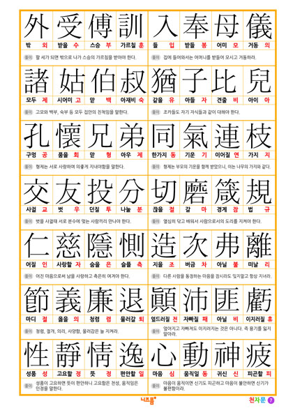 천자문은 총 18장으로 구성되어 있으며 일곱번째 장입니다.