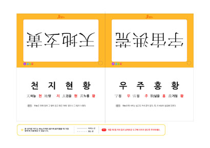 본 천자문 카드는 天地玄黃(천지현황), 宇宙洪荒(우주홍황) 사자성어로 구성되어 있습니다.