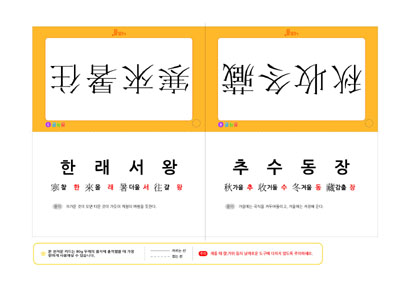 본 천자문 카드는 寒來暑往(한래서왕), 秋收冬藏(추수동장) 사자성어로 구성되어 있습니다.