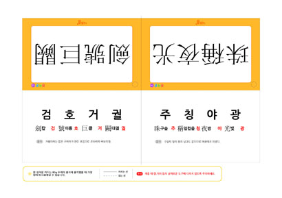 본 천자문 카드는 劍號巨闕(검호거궐), 珠稱夜光(주칭야광) 사자성어로 구성되어 있습니다.