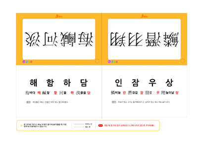 본 천자문 카드는 海鹹河淡(해함하담), 鱗潛羽翔(인잠우상) 사자성어로 구성되어 있습니다.