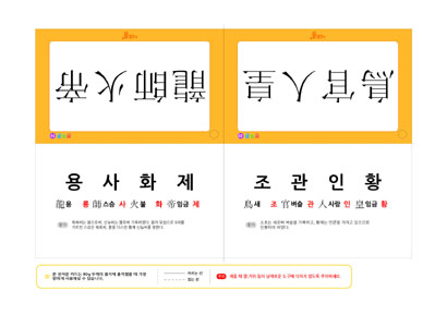 본 천자문 카드는 龍師火帝(용사화제), 鳥官人皇(조관인황) 사자성어로 구성되어 있습니다.