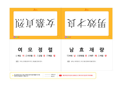본 천자문 카드는 女慕貞烈(여모정렬), 男效才良(남효재량) 사자성어로 구성되어 있습니다.