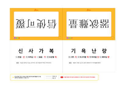 본 천자문 카드는 信使可覆(신사가복), 器欲難量(기욕난량) 사자성어로 구성되어 있습니다.