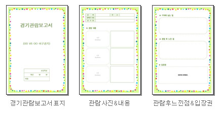 본 콘텐츠는 니즈폼(www.nizform.com)을 통해 서비스되는 경기관람보고서(A4 3장)(으)로서, 다운로드 받으신 후, 내용을 수정하거나 입력하여 사용하시면 됩니다.