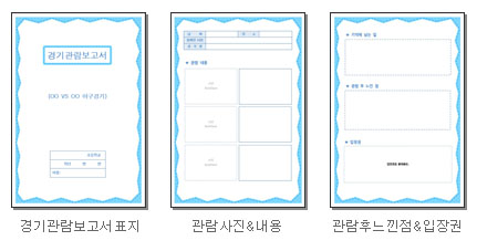 본 콘텐츠는 니즈폼(www.nizform.com)을 통해 서비스되는 경기관람보고서(A4 3장) (으)로서, 다운로드 받으신 후, 내용을 수정하거나 입력하여 사용하시면 됩니다.