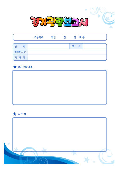 본 콘텐츠는 니즈폼(www.nizform.com)을 통해 서비스되는 경기관람보고서(푸른색별)(으)로서, 프린트하여 사용하시면 됩니다.