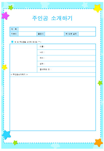 본 콘텐츠는 니즈폼(www.nizform.com)을 통해 서비스되는 주인공소개하기(별)(으)로서, 다운로드 받으신 후, 내용을 수정하거나 입력하여 사용하시면 됩니다.