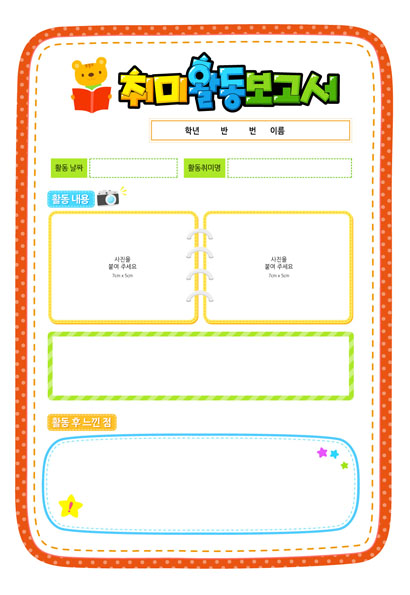 활동 내용과 활동 후 느낀 점을 작성 할 수 있도록 구성되어 있습니다.