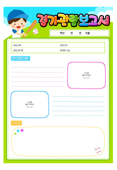 야구 경기 관람을 하고 작성하는 경기관람보고서 입니다.