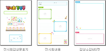 전시회감상문표지, 전시회내용, 감상소감, 티켓으로 구성되어 있으며 프린트(A4)되는 장수는 총 3장입니다.