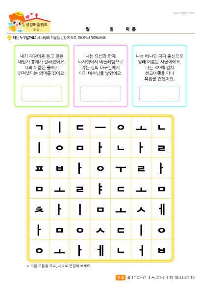 정답을 모르겠다면, 힌트에 표시된 성경 구절을 찾아보세요^^*