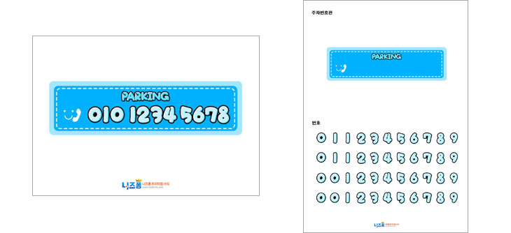 주차번호판과 직접 조합하실 수 있는 숫자들로 구성되어 있으며, 출력하셔서 주차번호판과 핸드폰 번호에 맞게 숫자를 자른 다음 주차번호판 위에 숫자를 붙여서 사용하시면 됩니다.